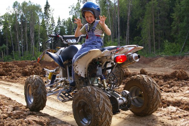 Пулей в шиномонтажку, забортовал два колеса, поставил на квадр. Небо и земля! Правда, колеса пришлось развернуть, немного доработать посадочное место и поставить их внутренней стороной наружу, иначе колея совсем узкой получалась. Теперь и с отвалом работает увереннее, и гоняет совсем по-другому - как-то плавнее, мягче... Увеличился накат, уменьшились вибрации на ходу. Покатал детишек - мелкого на квадре перед собой, двоих старших на снегокатах паровозиком. Детвора была в восторге. Завтра попробую поменять передние колеса, правда, придется летнюю резину ставить.