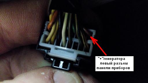 Сигнал с генератора на панеле приборов левый разъем(самый маленький), коричневый провод.