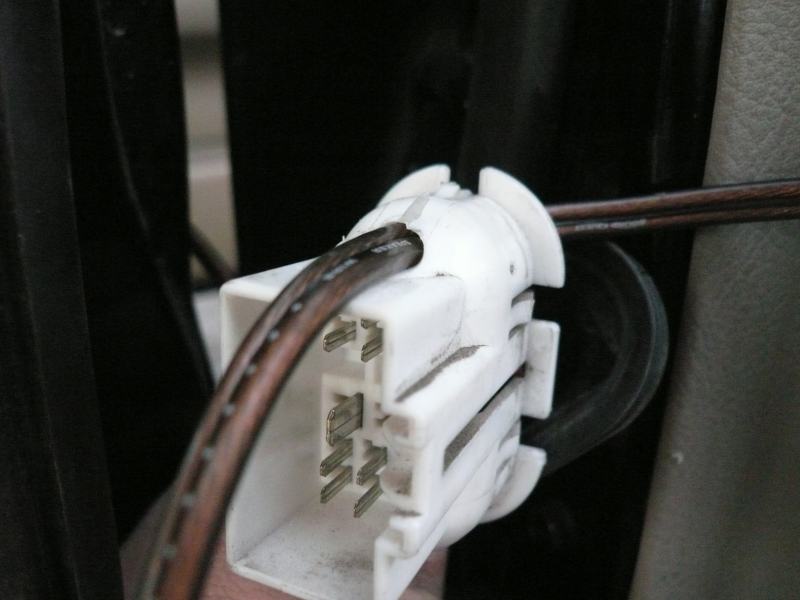 С передними дверьми аналогично, только там разъем немного другой, отверстие сверлим посередине.