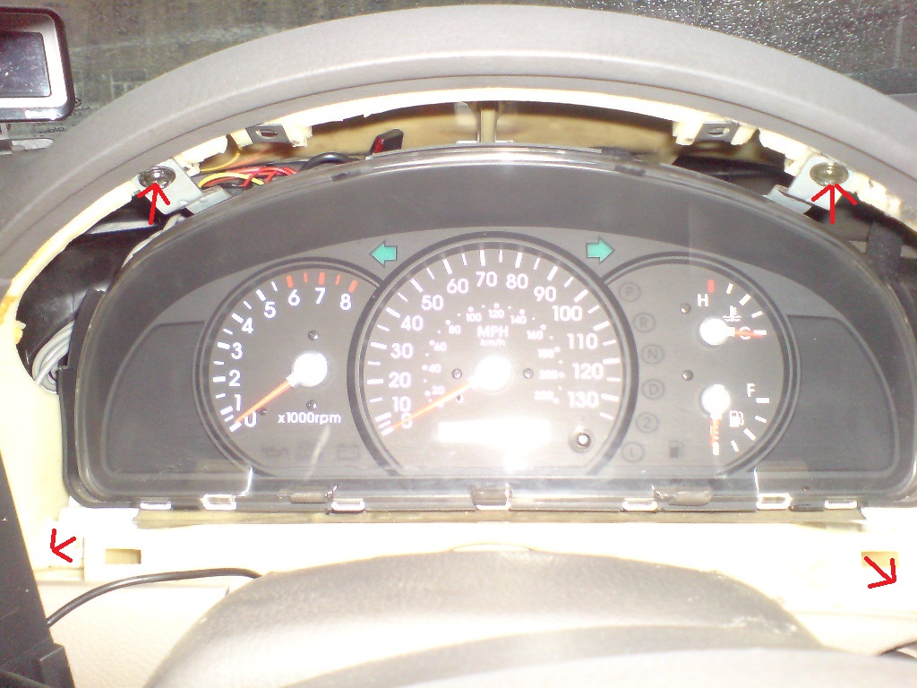 ИМХО самое удобное это сделать именно так. Сзади плату приборки защищает пластмассовая накладка, которая крепится на нескольких болтах. Откручиваем ее и собственно видим следующую картину: