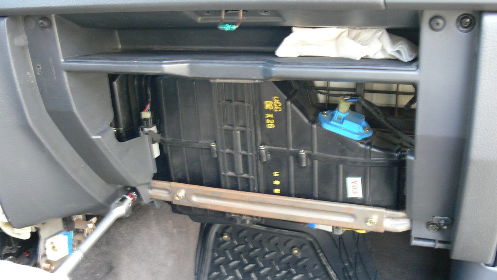еще добавлю, короб отопителя двигая аккуратно из стороны в сторону надо вытащить из короба кондея а потом влево и вверх.