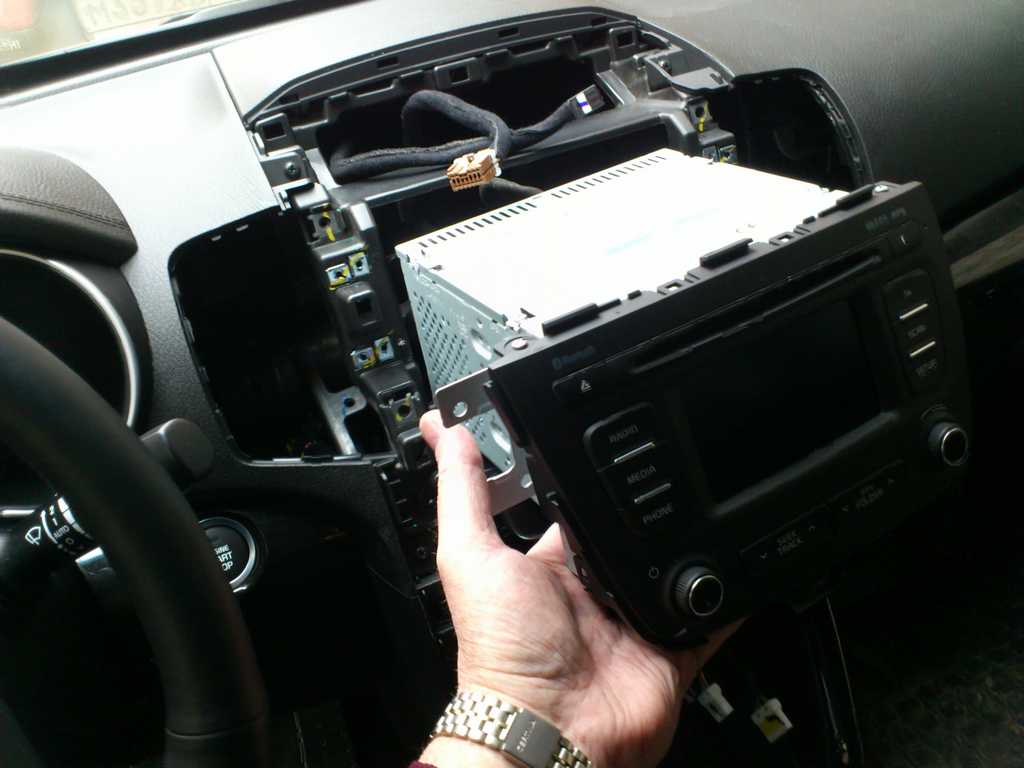 . Потом дело пошло и ..... все получилось. Начинать разбирать с низу где розетка и прикуриватель, там если пальцами поводить над розетками по центральной консоли по бокам есть два углубления. Вот туда пихаем пластиковые лопатки в виде крючка, и аккуратно начинаем тянуть на себя. Помогая вдоль рамки лопатками. Сидит ОЧЕНЬ плотно. Снимается вся рамка целиком от низа до верха включая часы. Не забываем отсоединять походу фишки, от розетки, прикуривателя, USB, подсветки кармашка с прикуривателем, обогрев и вентиляция сидении, часов. Остается на месте блок климата, магнитола и два центральных воздуховода. Они сидят на болтах под рамкой. Если что-то непонятно спрашивайте. Я еще помудохолся мне надо было снять весь низ где рычаг КПП и бардачок-подлокотник. Но это уже из другой оперы