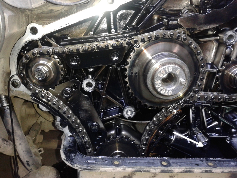 , медь подстёрлась (так что может и менялось, хотя остальный пластмасски в таком же состоянии). А вот что меня реально удивило, так это то, что ни кто (кажется) не написал, что нижний гидронатяжитель не снять, не снимая поддона. Верхний болтик выкручивается нормально, а вот нижний упирается в поддон, так что пришлось его не менять.