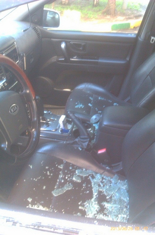 Вот друзья постигла меня не удача! Второй год оставлял регистратор в машине,а вчера вышел и вот тебе! Фото с телефона ! В общем украли только регистратор, хотя могли порыться и улов был бы больше,наверное спугнули. Странно к счастью, но рацию не тронули. Камень почти вылетел на сквозь,остановил его ручник,вывернутый на 45 градусов ! Вот такие творятся дела в ВАО ул.Щербаковская, удачи всем и берегите себя!!! Не оставляйте ничего лишнего в поле зрения этих СВОЛОЧЕЙ!!! Все закончилось в этот же день, цена вопроса 3700р. с установкой.
